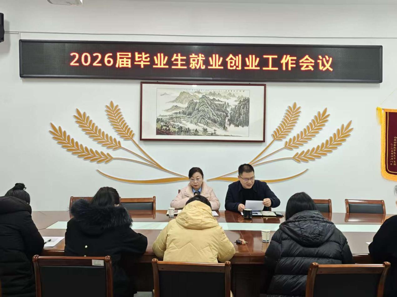 本网讯(通讯员/曾佳音)12月26日,太阳集团tyc151cc在19教201室召开2026届毕业生就业创业工作会议。党委书记李新宁、院长赵万哲,学院就业创业办公室负责人、学业导师及各专业负责人参加会议。