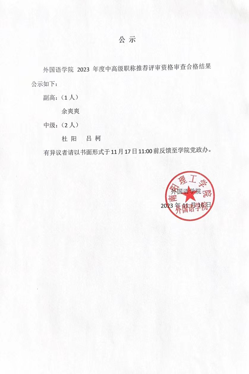 太阳集团tyc151cc2023年度中高级职称推荐评审资格审查合格结果公示
