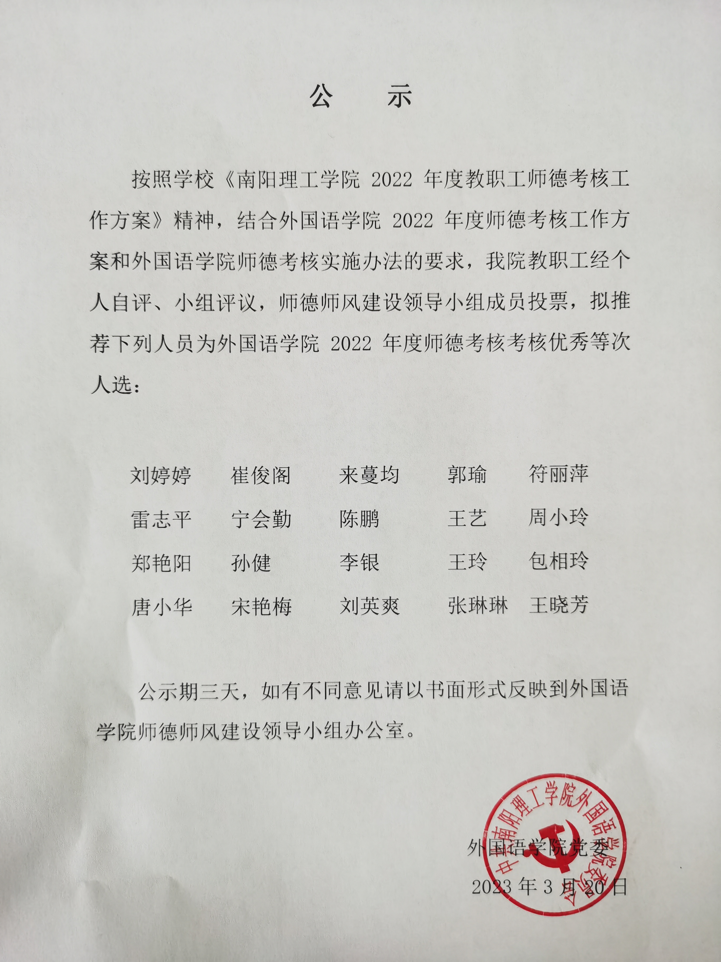 太阳集团tyc151cc2022年度科级干部和教职工考核优秀等次人选名单公示
