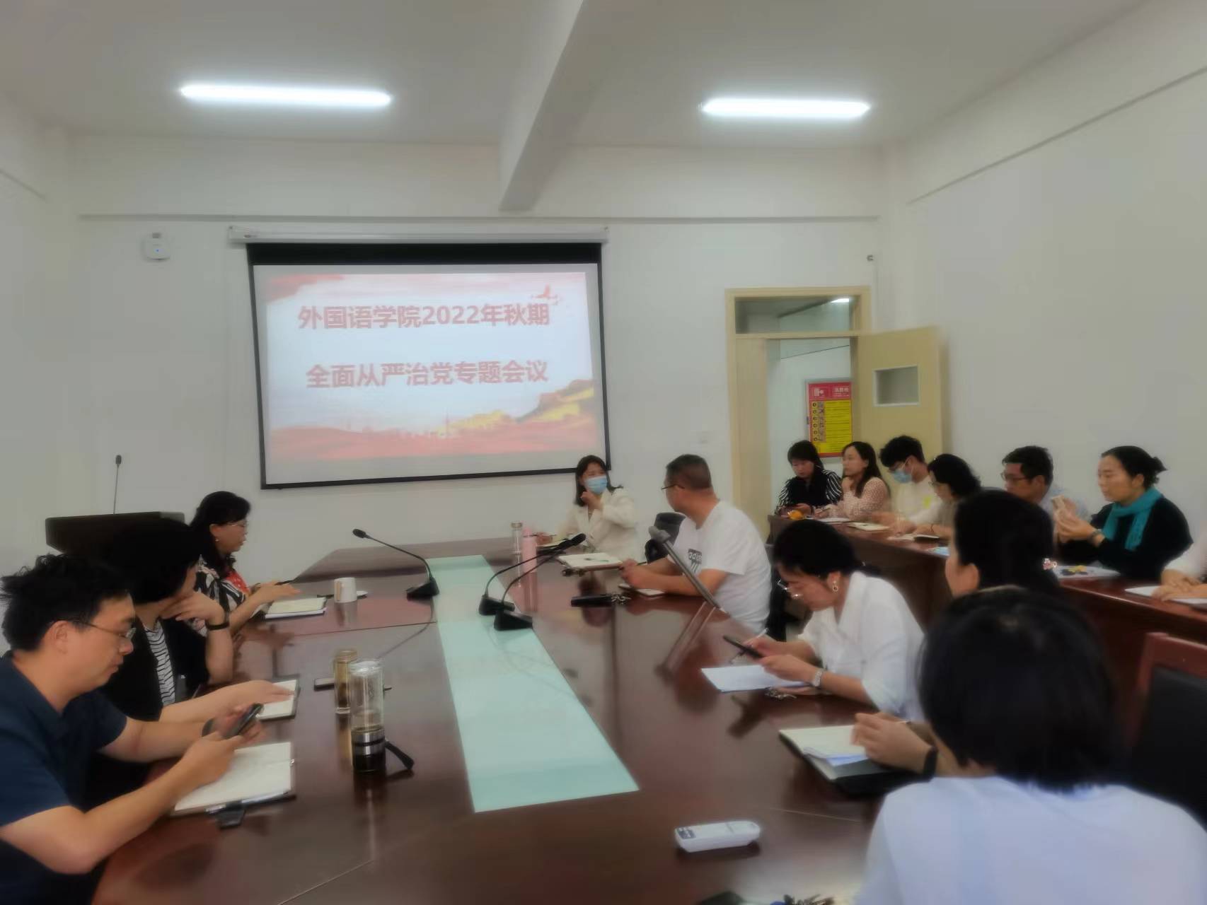 本网讯(特约记者/来蔓均)为贯彻落实全面从严治党战略部署,不断推进管党治党实践创新、理论创新、制度创新。9月30日,太阳集团tyc151cc在19教会议室召开2022年秋期全面从严治党专题会议,会议由院党委书记赵万哲主持,领导班子及各科室负责人参加。