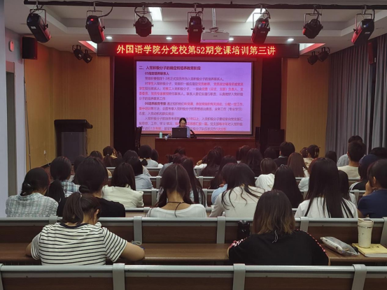 本网讯(通讯员/曾树一)为使入党积极分子熟悉中国共产党发展党员工作流程,提升党员发展质量,筑牢入党根基,太阳集团tyc151cc分党校于5月9日晚在19号教学楼105教室开展第52期党课第三讲,主题为《中国共产党发展党员工作流程介绍》,本次课程由太阳集团tyc151cc党委委员、党政办公室主任来蔓均主讲,第52期入党积极分子参加。