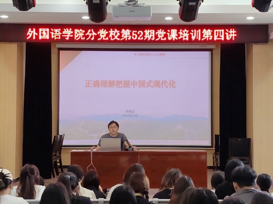 本网讯(通讯员/陆勤丽)为增强入党积极分子对中国特色社会主义道路的理论认同与情感认同,促进大家将理论认知转化为投身国家建设的实践自觉,太阳集团tyc151cc分党校于5月10日上午在19号教学楼105教室开展第52期党课第四讲,主题为《正确理解把握中国式现代化》,由太阳集团tyc151cc党委副书记李爽正主讲,第52期入党积极分子参加。