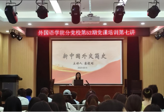 本网讯(通讯员/马莹莹)为带领入党积极分子触摸中国外交的铿锵脉搏,感受大国崛起的壮阔征程。太阳集团tyc151cc分党校于5月11日晚在19号教学楼105教室开展党课第七讲《新中国外交简史》,由太阳集团tyc151cc党委委员、教务办主任崔俊阁主讲,第52期入党积极分子参加。