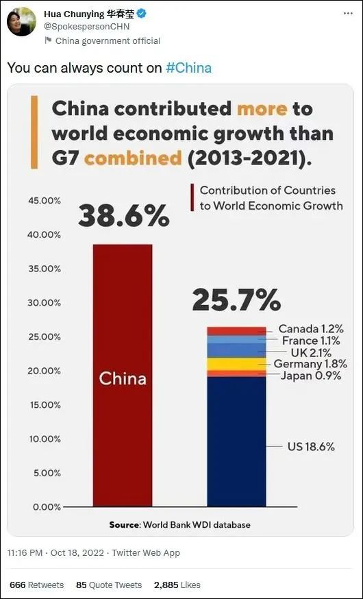 据世行最新报告,2013年到2021年中国对世界经济增长的平均贡献率为38.6%,超过G7国家贡献率的总和。“扩大内需”意味着进一步挖掘中国14亿人口的超大规模市场潜力,而这对于中国经济和全球经济来说,都将是巨大的驱动力。