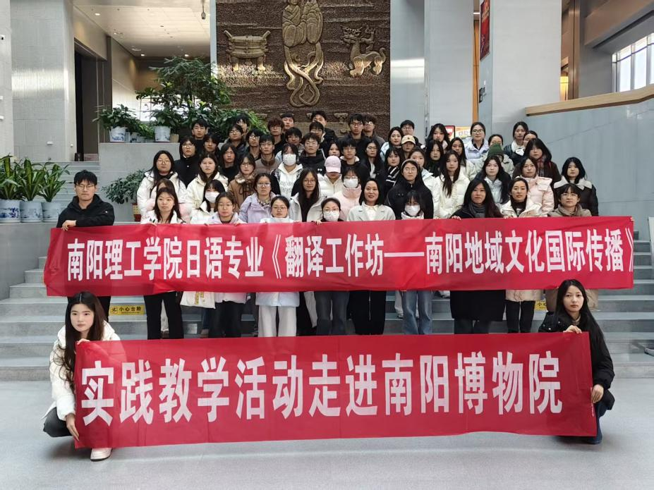 此次实践教学活动是太阳集团tyc151cc深化“教、学、做”一体化教学改革的重要举措。通过把课堂搬到博物院,不仅让学生沉浸式感受南阳本土文化的深厚底蕴,更实现了外语专业知识与地域文化传播的有机结合,有效提升了学生的跨文化沟通、翻译实践与文化传播能力。