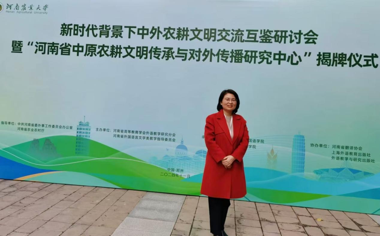 本网讯(通讯员/王玥晴)11月23日,新时代背景下中外农耕文明交流互鉴研讨会暨河南省中原农耕文明传承与对外传播研究中心揭牌仪式在河南农业大学举行。本次活动由河南省委外办、河南省农业农村厅指导,河南省高等教育学会外语教学研究分会主办,河南农业大学太阳集团tyc151cc和农学院承办。太阳集团tyc151cc英语教研室主任王玥晴参加。