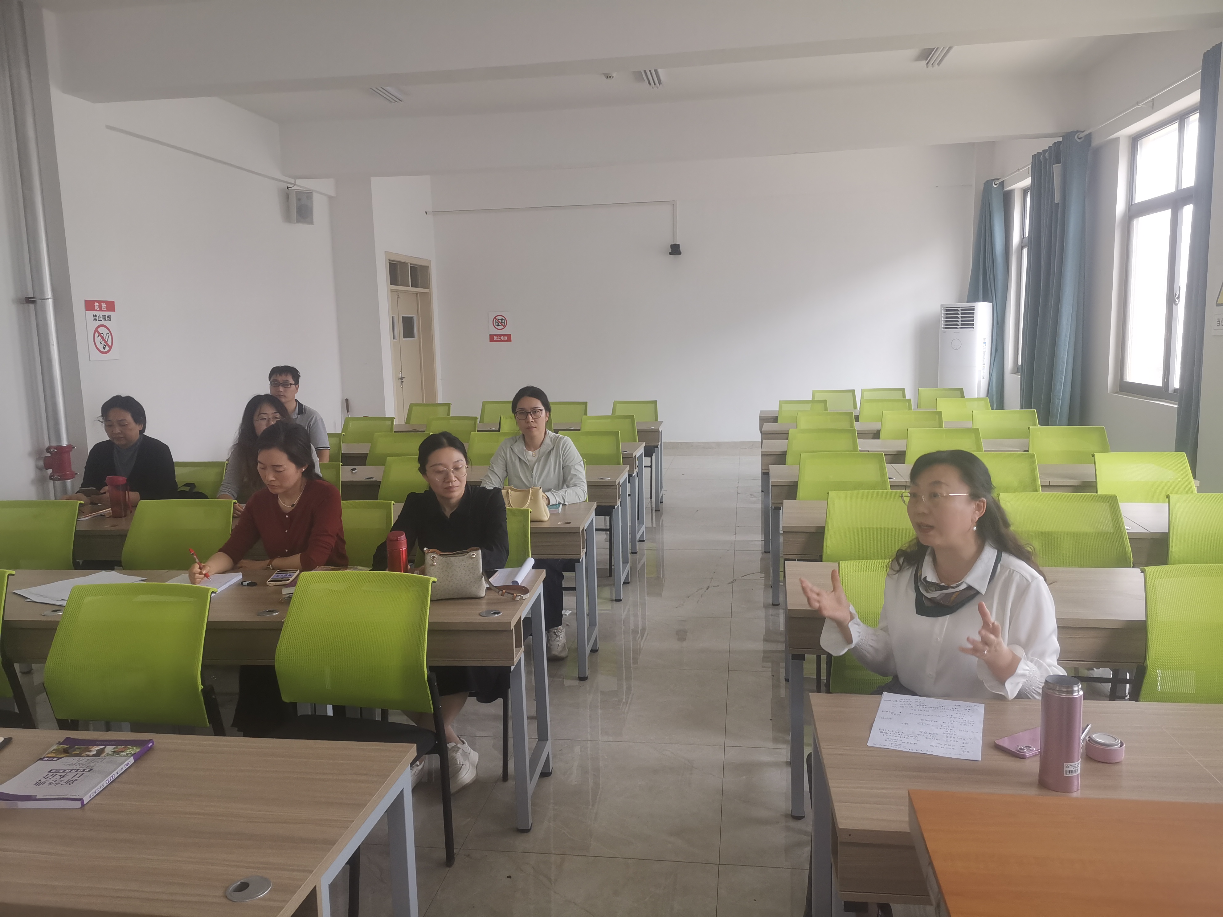 本网讯(通讯员/余小权)为全面迎接本科教育教学审核评估,4月23日下午,太阳集团tyc151cc日语教研室开展"以评促强、以评提质"专题磨课活动。全体教师围绕"以学生为中心的教学设计""信息化教学创新"及"课程内涵建设"三大主题展开深度研讨,太阳集团tyc151cc院长赵万哲全程参与指导,并就人工智能技术深度融入语言教学作出重要指示。