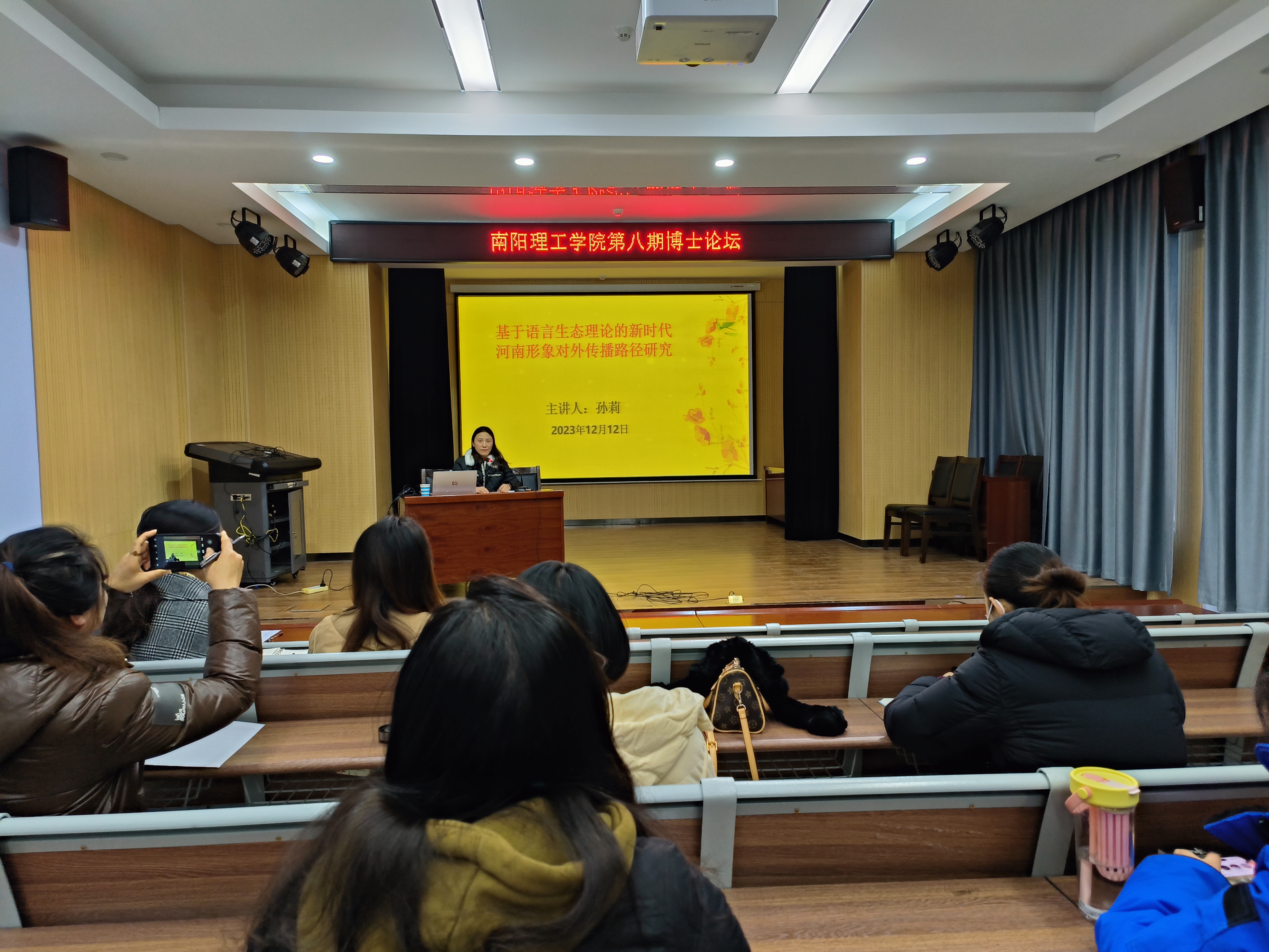 本网讯(特约记者/周小玲)2023年12月12日下午,由太阳tyc151cc科研管理处主办,太阳集团tyc151cc承办的第八期博士论坛在太阳集团tyc151cc会议室19105成功举办。本次论坛以“语言研究方法”与“河南形象对外传播”为主题,学院教授、博士及其他对科研感兴趣的教师参加了此次论坛,论坛由学院副院长包相玲主持。