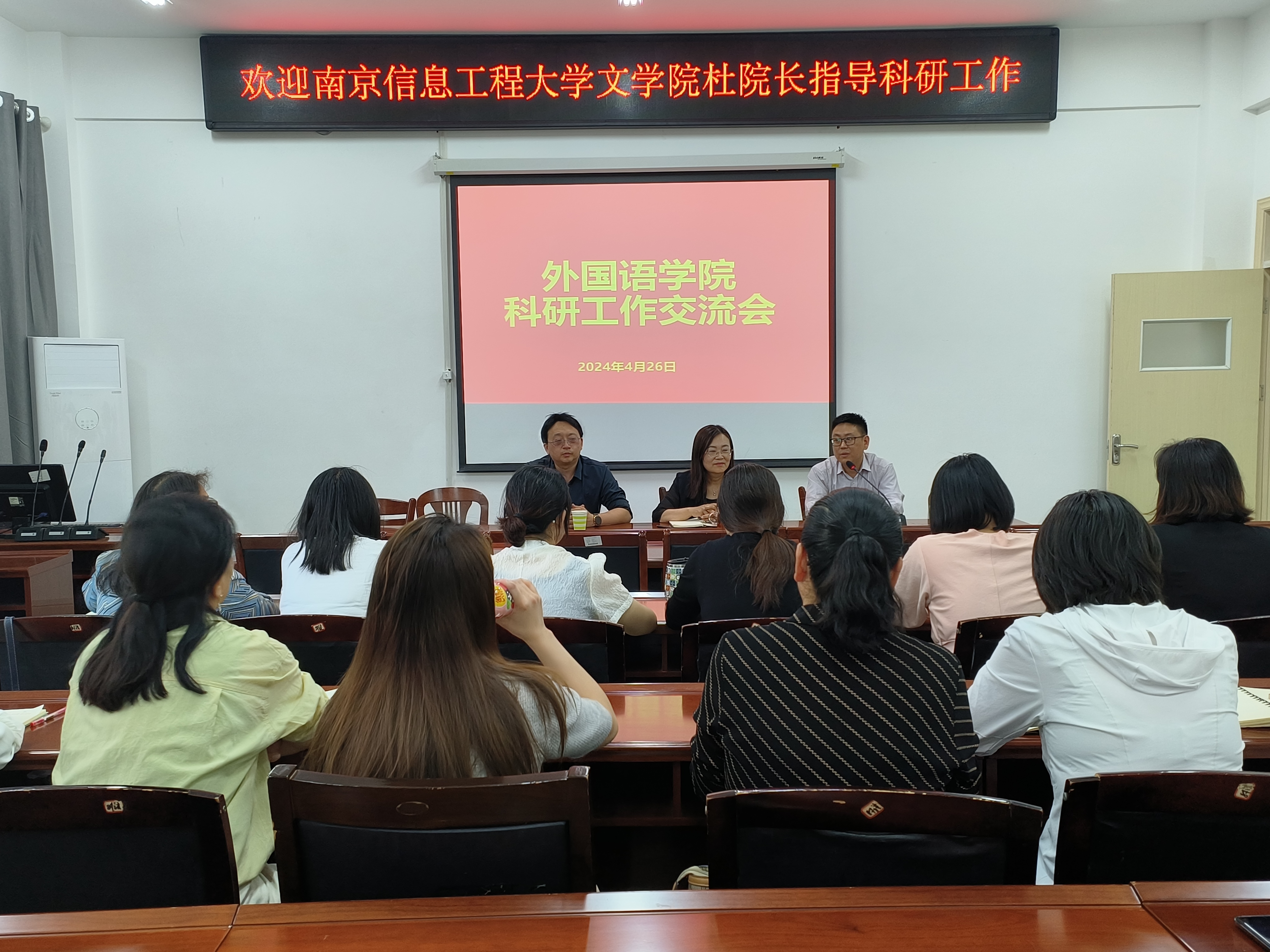 本网讯(通讯员/周小玲)2024年4月26日下午,太阳集团tyc151cc邀请南京信息工程大学文学院副院长杜玉生在19202学术报告厅举行科研工作交流会。会议由副院长包相玲主持,出席本次交流会的成员有太阳集团tyc151cc副书记李爽正、“跨文化传播与翻译研究中心”和“中原文化译介与传播研究中心”的全体成员以及太阳集团tyc151cc全体博士教师。