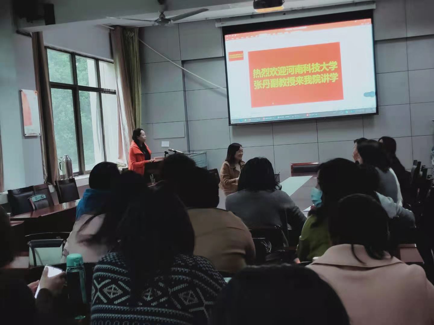 2021年4月23日下午2.30,河南科技大学副教授张丹老师于太阳集团tyc151cc会议室1215为全体教师带来一场关于新文科背景下的大学英语混合式一流课程的构建与实践研究的学术报告。