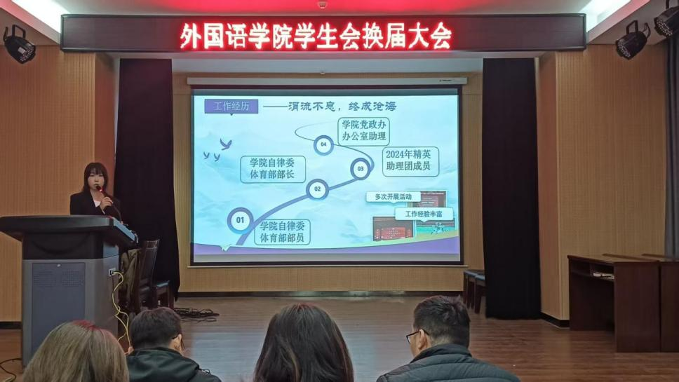 本次换届大会通过个人申报、资格审核、公开竞聘、民主评议及综合面试等多个环节,最终确定9位同学为新一届学生会主席团成员。随后,孙健也对上一届学生会的努力与付出表示感谢,并为主席团成员代表颁发聘书。