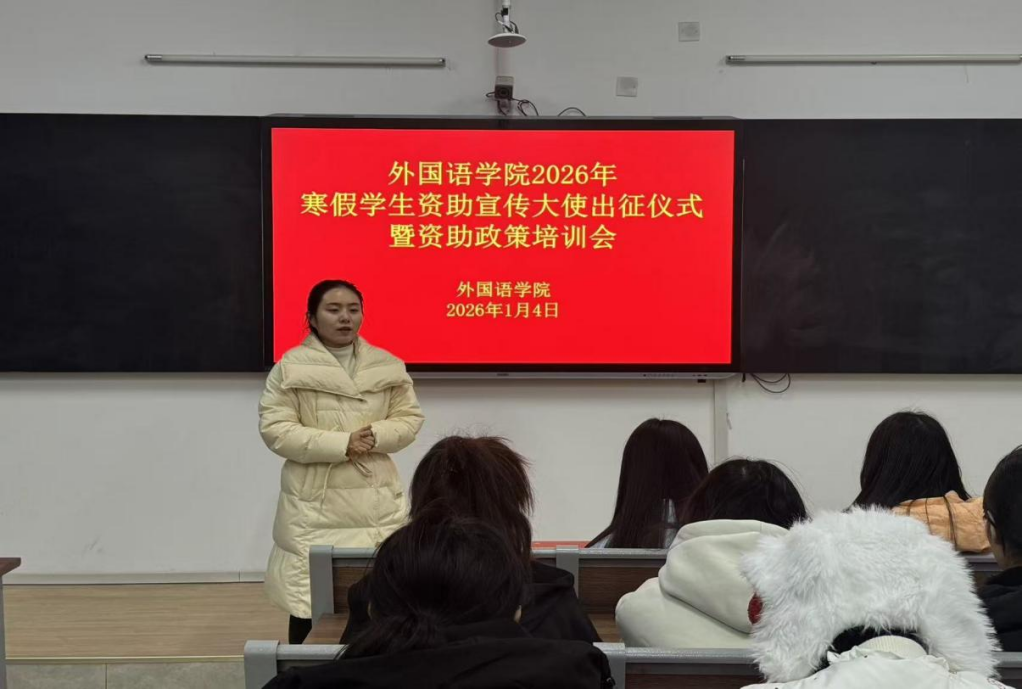 本网讯(通讯员/刘淑芬)为持续推进国家资助政策宣传,发挥先进学生的示范引领作用,引导学生从“受助”到“助人”的积极转变,1月4日,太阳集团tyc151cc于19教507举办2026年寒假学生资助宣传大使出征仪式暨资助政策培训会。本次培训会由学院资助专干老师尚明萱主持,全体资助宣传大使参会。