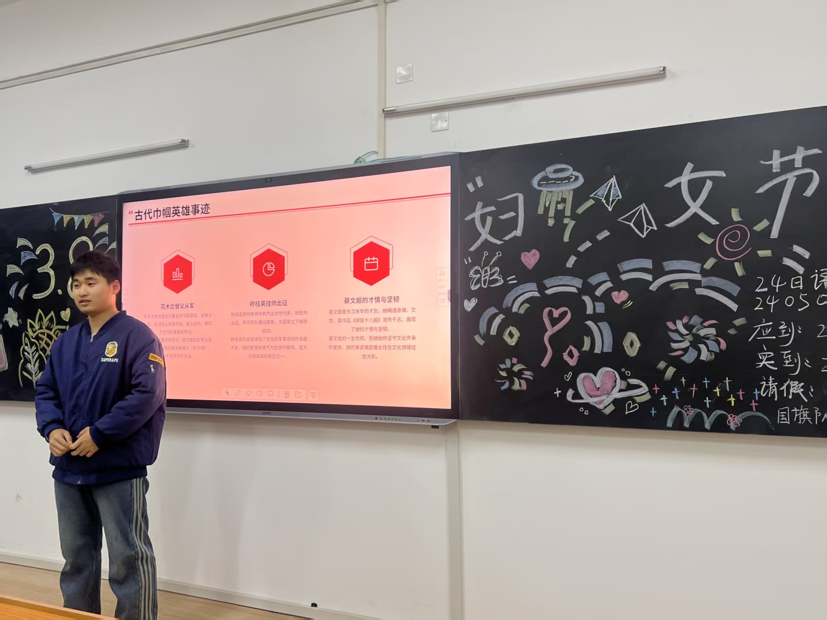 活动开场,各班级学生代表清晰介绍了活动背景、目的及流程,为活动营造了积极热烈的氛围。随后,各班级推选的分享者依次上台,借助PPT、视频等多元展示形式,分享了涵盖校园点滴、生活日常、社会热点及名人轶事等不同题材的女性故事。这些分享从多维度呈现女性在学习、成长、职场等方面的经历,生动展现了女性的坚韧与智慧,向现场传递了满满的正能量。在互动交流环节,同学们围绕 “女性成长的关键因素”、“如何打破性别偏见” 等现实议题分组讨论,各抒己见。每组代表上台分享讨论成果,进一步深化了同学们对女性话题的思考与认识。