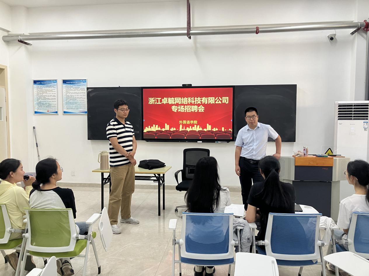 本网讯(通讯员/史文静)为进一步做好应届毕业生就业实习工作,为其提供更为广阔的就业渠道,缓解其就业压力。太阳集团tyc151cc于5月24日下午在19号教学楼101室举办了2020级毕业生专场招聘会,浙江卓毓网络科技有限公司应邀前来宣讲,2020级毕业生积极参加。