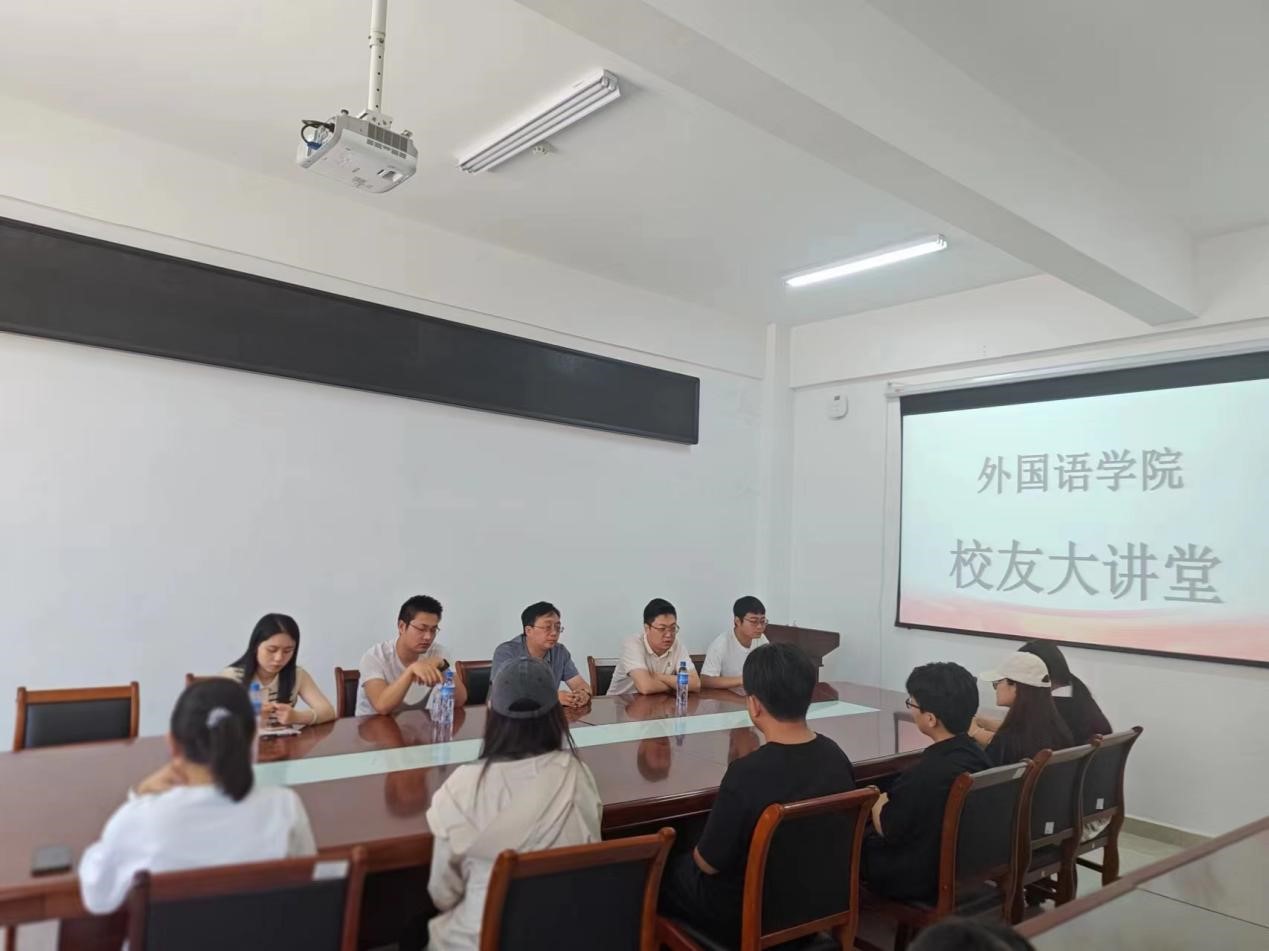 本网讯(通讯员/陶明越)为搭建校友交流平台,助力学生成长。6月23日,太阳集团tyc151cc于19号教学楼201室召开校友大讲堂。本次大讲堂由14级优秀校友张衡主讲,太阳集团tyc151cc党委副书记李爽正,21级辅导员尚明萱,23级辅导员李鹏飞出席此次会议。